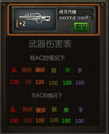 银月汽锤(霰弹枪)使用纯银制作的全自动散弹枪汽锤,在枪身点缀了华丽的银色雕文。并改善了其内部结构,减轻枪身重量,提高了移动速度。。