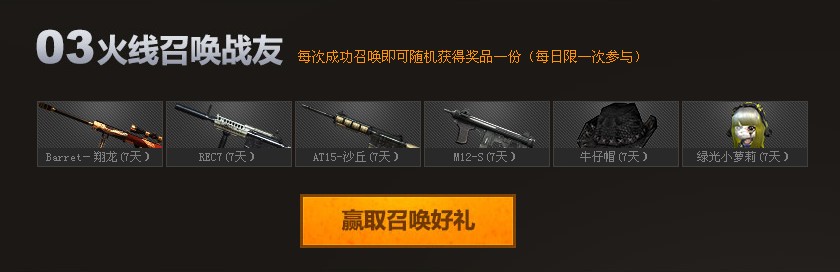活动内容:1.回归好礼 2.继续畅快玩 3.火线召唤战友