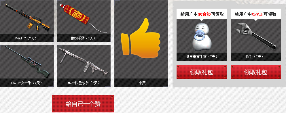 2014年1月14日后首次注册用户可领取以下新手礼包和1次“赞”,积累赞可在下面兑换礼包哦