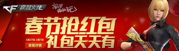 1月27日-2月7日,玩家登录活动页面(http://cf.qq.com/act/a20140115cjqhb)即可参与“春节抢红包”活动。CFer可通过每日游戏获赠抽奖机会,也可邀请火线好友重回战场共领红包。除却红包好礼,CF将在活动期间开启三倍经验、被杀不计、加倍GP。丰富道具尽“藏”红包,CF邀玩家痛快一战。