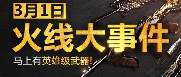 久前,火线姐微博曝料了3月1日的火线大事件。今天火线大事件的活动页面已经揭开了其神秘面纱。一大批CFer们心仪的道具将从3月1日起大放送。其中还包括英雄级武器在内,所有参与活动的玩家通过自己的努力都有一定机率抽中英雄级武器。两重大礼、四重惊喜,狂欢的脚步已经离我们越来越近了,小伙伴们赶紧准备起来吧!