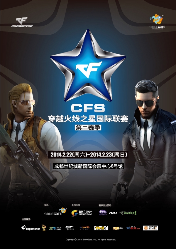 [2014-0221] SmileGate Entertainment(法人代表杨东起)研发运营的《穿越火线》的国际赛事CROSSFIRE STARS Season2(以下简称CFS S2)汇集了来自全球11个国家及地区的选手,本周末将正式展开比赛。