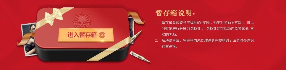 2.活动结束后,暂存箱内未处理道具将被销毁,请及时处理您的暂存箱。