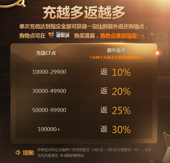 穿越火线《充值惊喜爆棚》返点官方公告