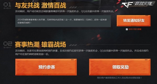 “兄弟举枪共战百城”主题活动链接:http://youxi.vip.qq.com/game/act/201402/cf_spr.html
