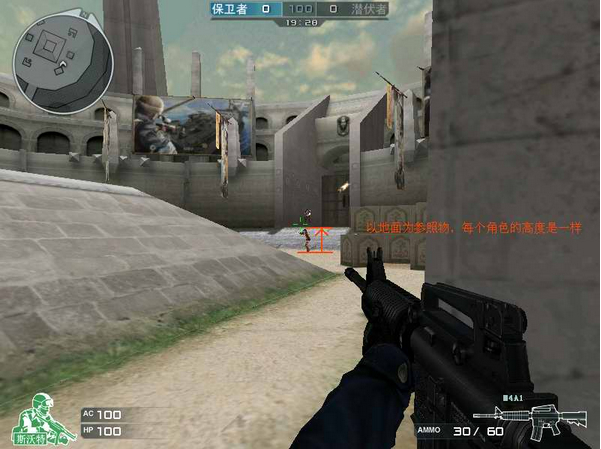 这时候我们将参照的目标从运输船中间的横线变成地面,不管对方在什么地方出现,CF中人物的高度就那么高,我们需要以地面为参照物,逐步去熟悉人头相对于地面的高度。这个阶段与初级阶段瞄准爆头线速成不一样,需要一定的时间的磨练,最终的结果就是你能够在大脑中想象出,在某个距离,相对于那里的地面,人头的高度大概是什么位置。