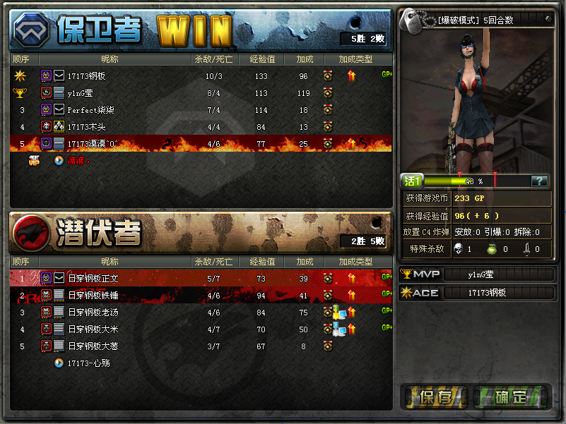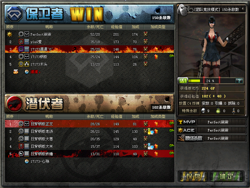 第一张图沙漠1-TD,拥有两名前CF职业选手的17173游戏网应该说从头至尾占据了场上的主动权,特别是主道狙击手77的发挥堪称惊艳,整场比赛52杀不仅创造了开赛以来的最高击杀记录,更是将电玩巴士这边打得束手无策。最终17173游戏网以150:102获胜!