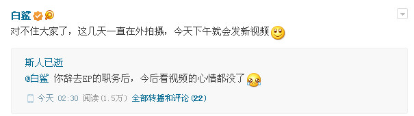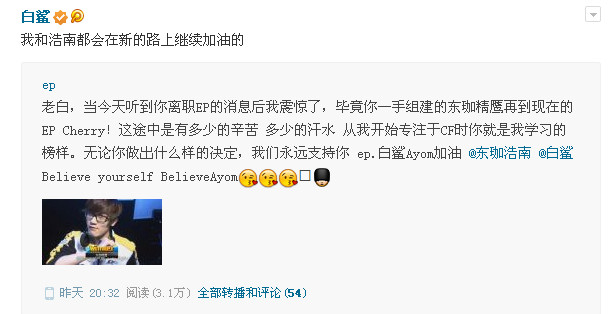 白鲨辞去ep俱乐部经理一职网友微博热议