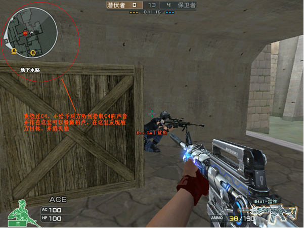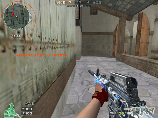 3、引蛇出洞:潜伏者也可以故意拾取C4,让保卫者听到声音后闻声而动,此时你已做好准备,对手出现,则立即给予打击,并消灭对手。
