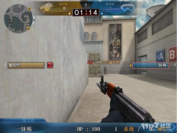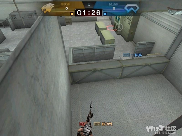 潜艇更衣室的防守1,一个在更衣室2楼,一个在更衣室大箱后,当2楼的队友看到更衣室来人时迅速扔下闪光,躲在箱子后的队友瞬间拉出去打。(此卡位需要多次联系和默契的配合)