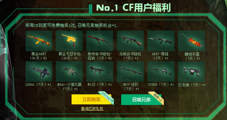 所有CF玩家可免费抽奖1次,召唤兄弟抽奖机会+1.