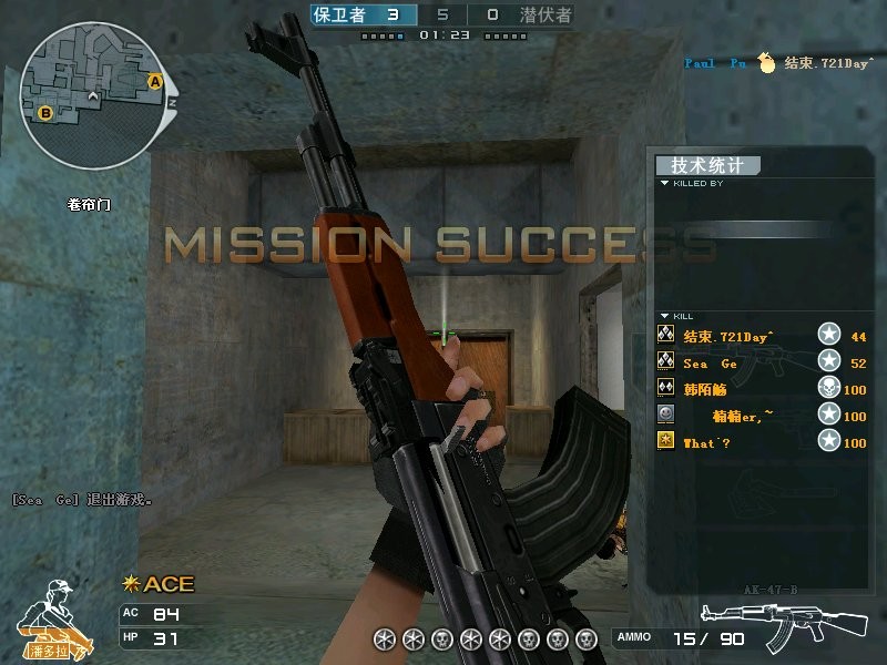思路。思路其实和之前的心理搭上一点关系,首先我来解释一下思路在这里的意思。当其余队友全部被击杀时,可以通过他们的死亡视角可以获得敌人的行走路线,能够大致明白对方的走位,这样以后,需要自己建立一个思路,如何寻找一条路线去一个个地击杀敌人。当击杀完第一个敌人后,判断是否前方或者后方还有敌人,假设还有,这时必须打提前枪,这样才能尽量减少自己的血量消耗。当自己是潜伏的时候,需要慢卡,因为当对方采取的是保守的守包点战术,只能通过慢慢的来打;当自己是保卫或者是潜伏主动来抓人的时候,就要利用自己所处的地形,进行最后一搏。