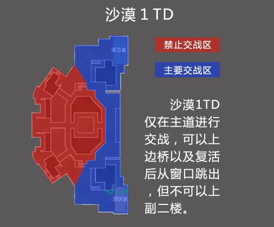 沙漠1TD仅在主道进行交战,可以上边桥以及复活后从窗口跳出,但不可以上副二楼。