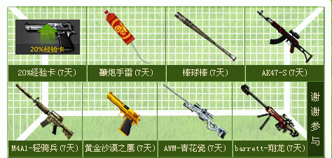 3、每个玩家可获得1次抽取青花瓷系列武器试用资格;2014年5月23日-5月28日期间抽到系列武器试用资格的玩家,将于5月29日统一为您发放,请登陆个人中心查看;