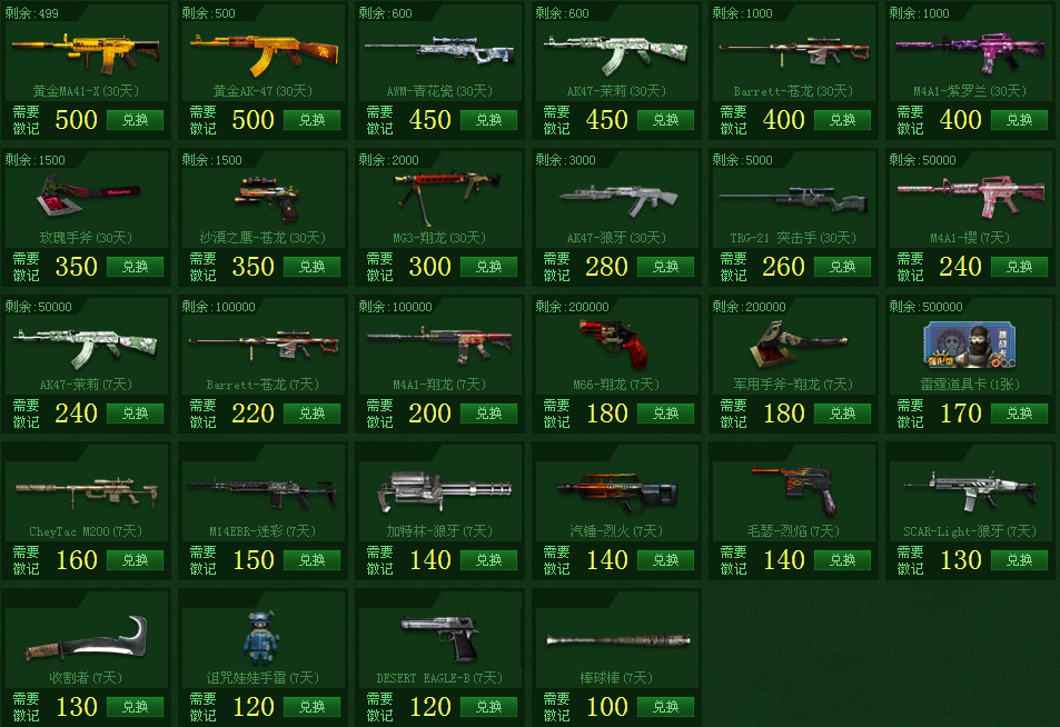 黄金M4A1-X,黄金ak,青花瓷AWM,茉莉ak,苍龙巴雷特