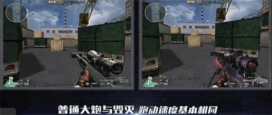 经过测试:手持毁灭与普通大炮时的跑动速度基本相同。