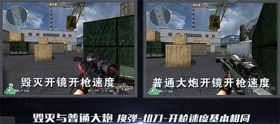经过测试:毁灭与普通大炮换弹、切刀、开枪速度基本相同。