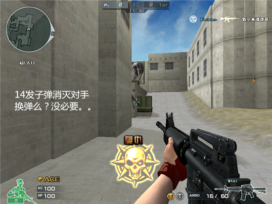 1、整体弹药的合理分配:CF中携弹量是有限的,在竞技模式下,即便是装备有弹夹道具的玩家,携弹量也仍然有限,有限的子弹合理的分配给不同的用途,不仅仅可以提高子弹的利用率,同时又能大大提高玩家的持续作战能力。