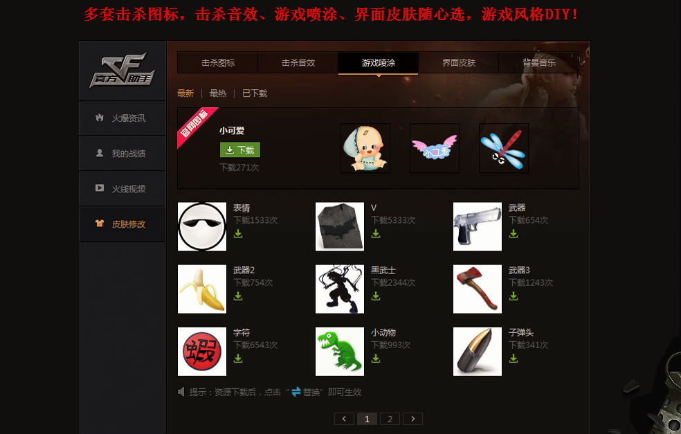 CF官方助手提供强力的加速双引擎、游戏内辅助功能、数据化战绩展示、精彩的视频和直播内容、自定义击杀图标、音效、喷涂等,让您玩得更爽快、更安全!