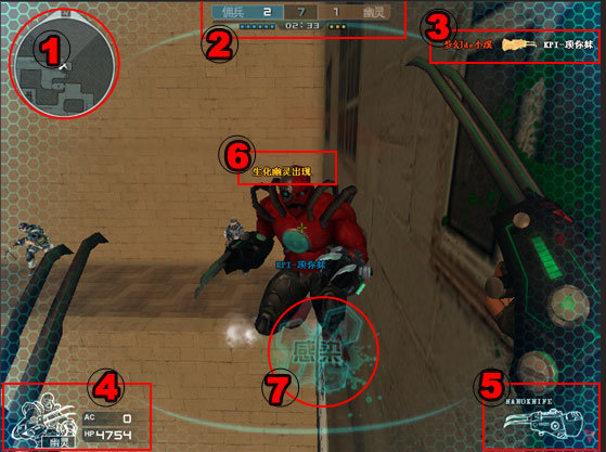 2.佣兵人数/生化幽灵数,中间显示总共局数和本局剩余时间。