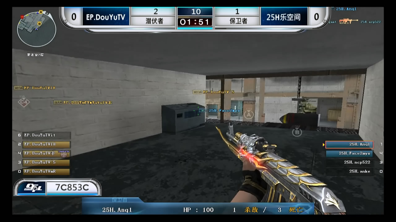 本届CFPL给人印象最深的坑爹镜头莫过于季后赛首轮,EP.DouYuTv vs 25H乐空间的比赛中,elegant大炮误杀队友安可!当时安可蹲在控制室中,试图架手持大炮的elegant侦查管道,但后者跳了两次没有跳上去,反倒直接TK了队友,虽有队友和elegant本人均一脸茫然,elegant则直接退出了游戏。