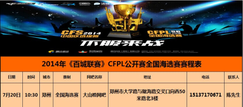 CFPL 公开赛河南省赛区选拔赛本周日开战