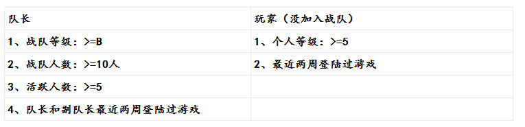 备注:需要满足以下条件的玩家才能获得系统推荐战队