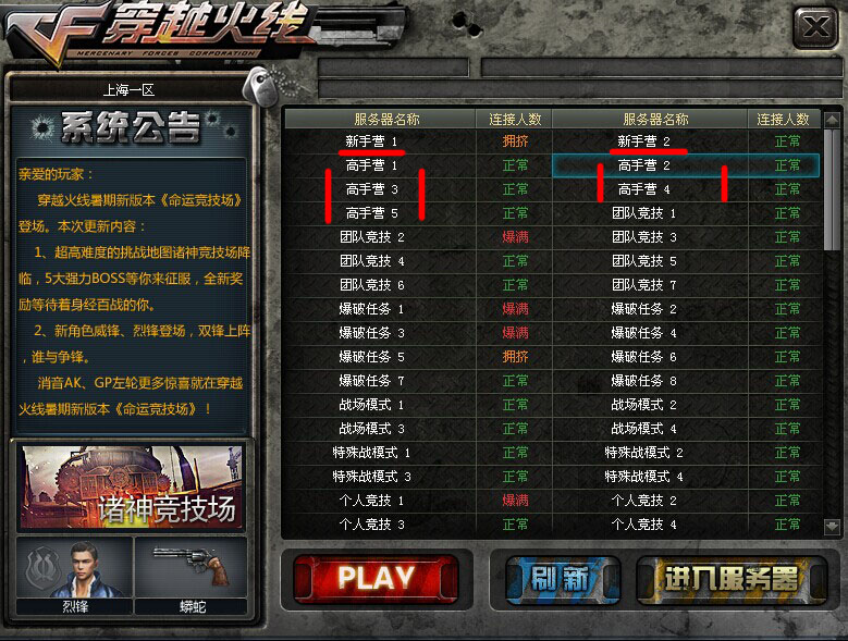 再次说说新手营的事,奇葩1中我们可以发现新手营惊现最高等级的国家元首,而今日更新过后,不管是谁都能在穿越火线的每个频道内穿梭自如。请看第一张图,小咖出现在新手营中,这也是要虐菜的节奏吗?其实小咖是通过快速加入进入的房间,一开始小咖以为是系统出错,结果打完这局个人后,一看,惊呆了。整个大区的所有房间都没有等级限制了。新手营(限制条件:下士1以下),高手营(限制条件:中士1以上),就连战场模式也是不分了等级,想当初官方为了维护低等级战场玩家特地设置的(lv1~lv10)已经没了,请问官方,你们就这样把你们的努力付之东流吗?当然,小咖觉得这已经是这次更新的错误吧,快点修复哦!