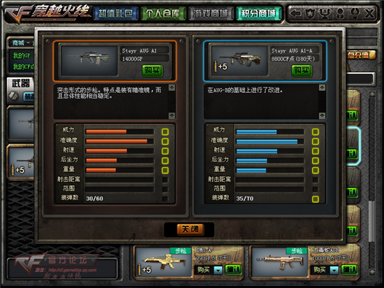 CF中对Steyr AUG A1的描写为:突击形式的步枪,特点是装有瞄准镜,而且总体性能相当稳定。