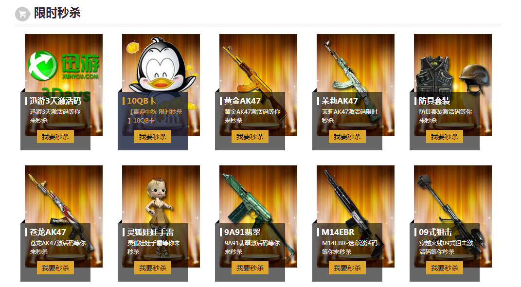 此次秒杀活动从8月20日正式开始,月底结束,需要的水晶数量从200-500不等,品种包涵黄金AK,幽灵娃娃守擂,10QB卡,茉莉AK等玩家喜欢的穿越火线道具!另外,17173水晶兑换平台还为玩家准备了毁灭巴雷特,黑龙M4,火麒麟AK三把英雄级武器哟!