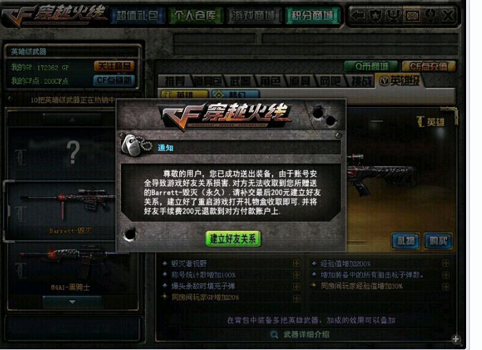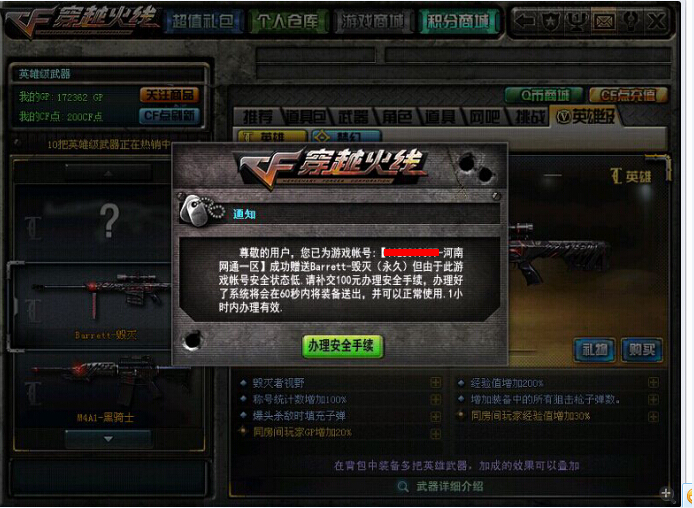支付宝转账后,店家发来一副游戏内截图。成功赠送?帐号安全低?100手续费?