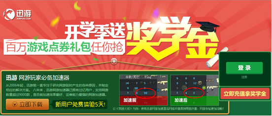 从2006年起,迅游就一直专注于研究网游延时产生的各种原因,并制定相应的解决方案。 八年来,迅游网游加速器已拥有过亿用户,支持网游数量超过9000款,是目前加速效果最好、运维能力最强的网游加速器。现在开学季来临,迅游隆重推出开学季“奖学金”活动。