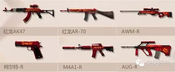 红龙枪系列凭借喜庆的外观和高效的性能,获得无数玩家的青睐。其中最具代表性的莫过于红龙AK,后座力道低,威力强劲,堪称AK系列的经典之作。作为中国风系列的定制枪械,颜色外观都是数一数二的,非常讨人喜欢,洋溢着节日的气氛。除此之外,AWM-R、红龙AR-70、AUG-Red每一款都让人爱不释手。