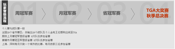 在2014百城联赛的秋季赛中,除了以往的团队赛之外,还增加了个人金枪王赛事。也就是说只要玩家的个人实力过关,同样可以凭借个人实力走向TGA大奖赛的舞台。