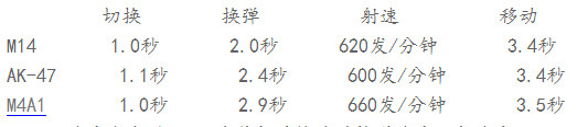从速度上来说。M14有着极其快速的换弹速度,射速方面,M14介于AK-47和M4A1之间,重量与AK-47相当。较低的射速保证了M14有着对弹道较好的控制能力。