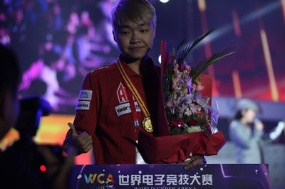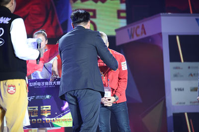 WCA2014 10月5日现场快讯:WCA七大比赛项目已全部结束,闭幕式于当晚在银川国际会展中心成功举行。宁夏电竞协会会长米博先生为《穿越火线》冠军AG战队进行颁奖,以下是现场的颁奖图集
