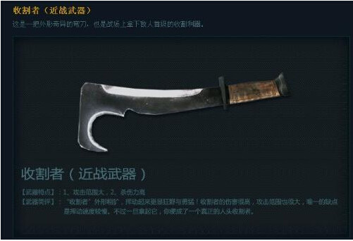 特点:镰刀一样的外形,较快的轻击速度和伤害(有AC打头92),切刀时猥琐而又帅气的磨刀动作···你只能排第10了,因为你后面还有好多没有上榜呢