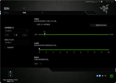 4、尽可能使用低灵敏度,最好能配上低DPI的鼠标。这是由于手指在点击鼠标的时候,手指对鼠标的冲击可能会带来轻微的鼠标位移,如果DPI高或者灵敏高的话,可能会带来准星的位移造成失准,这里我们以雷蛇鼠标为例。