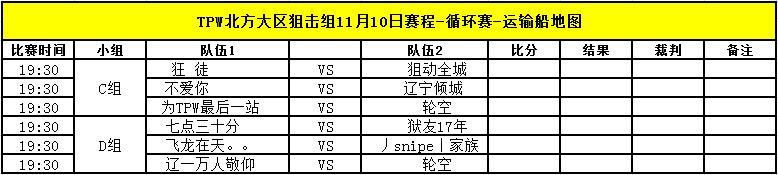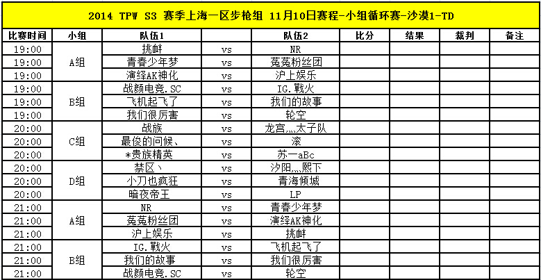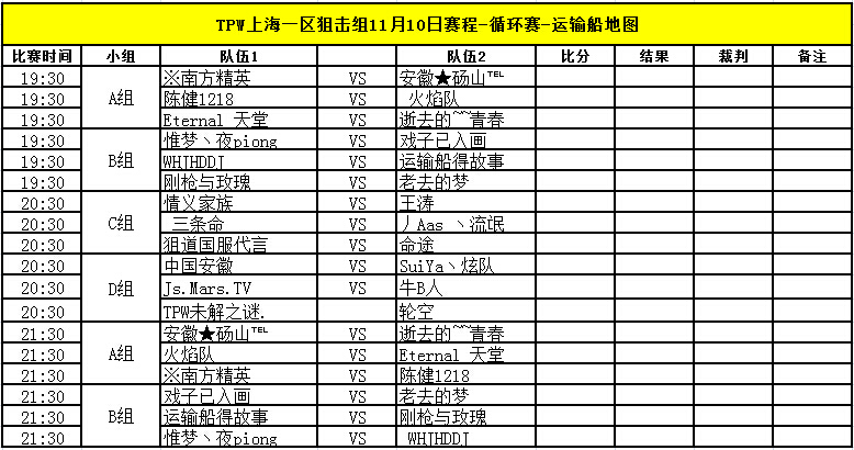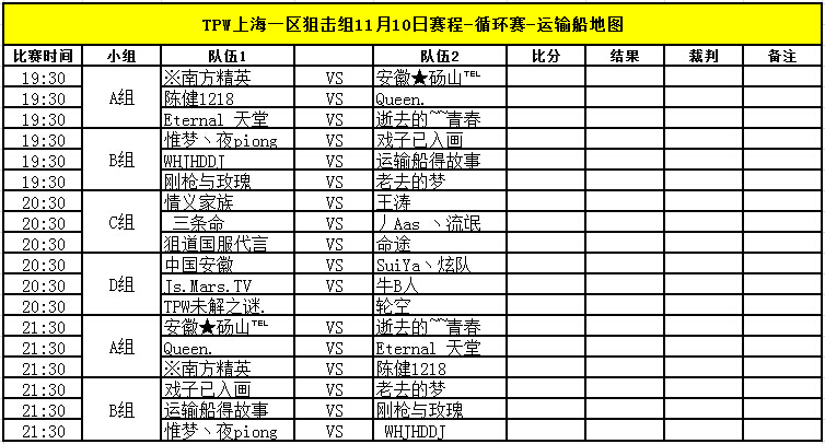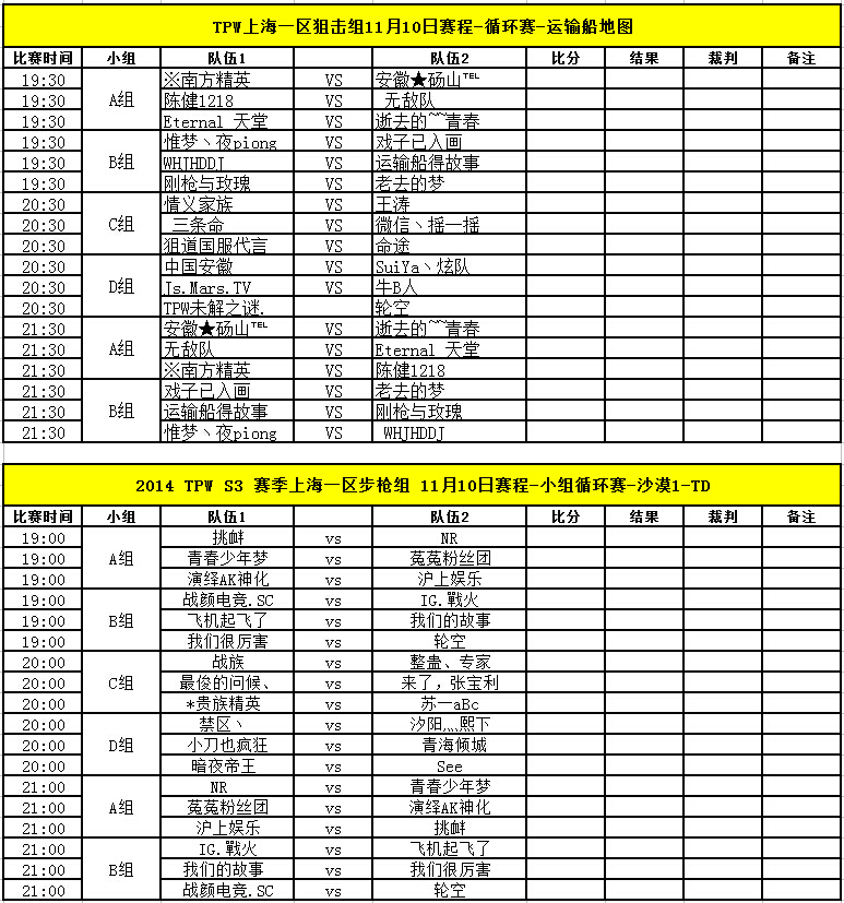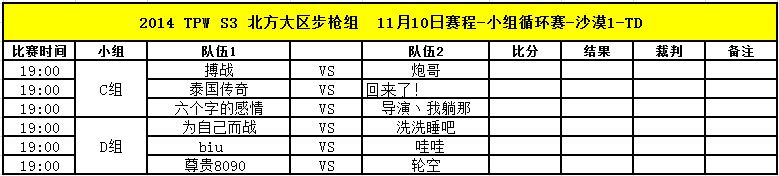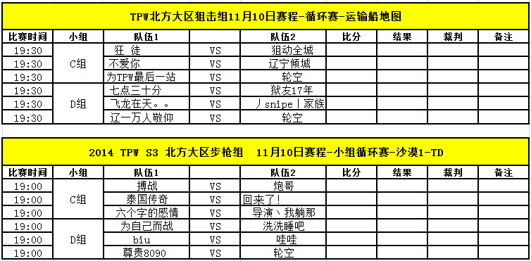 TPW S3赛季11月10日比赛对阵信息公告