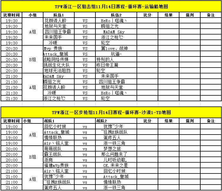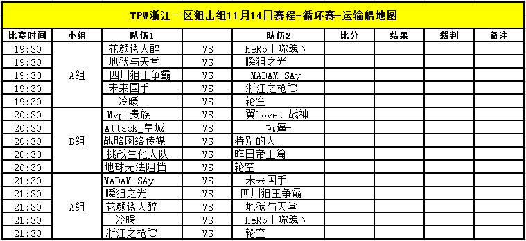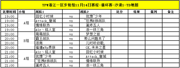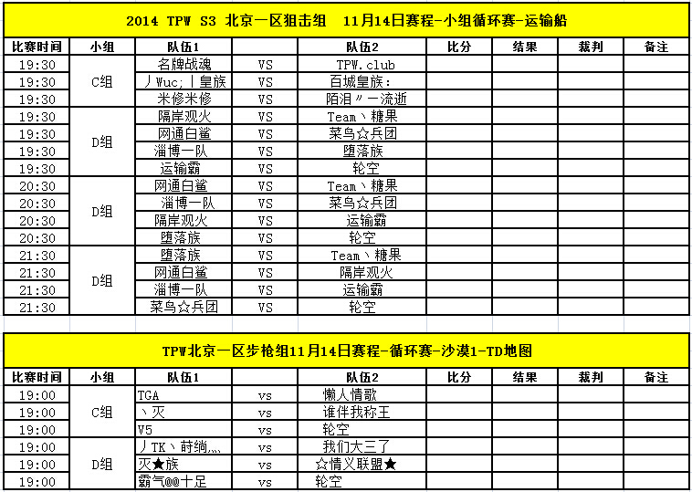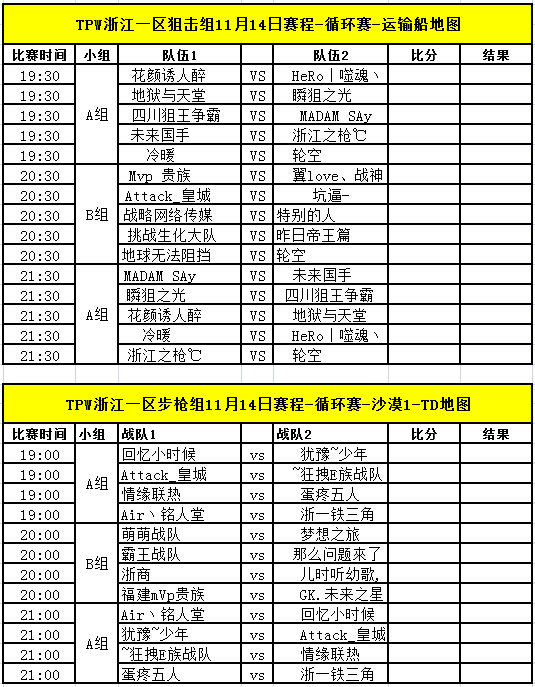 TPW S3赛季11月14日比赛对阵信息公告
