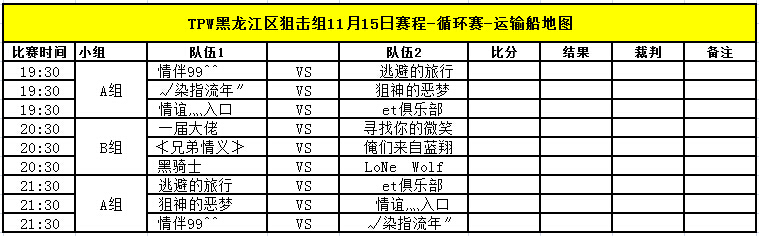 TPW S3赛季11月15日比赛对阵信息公告