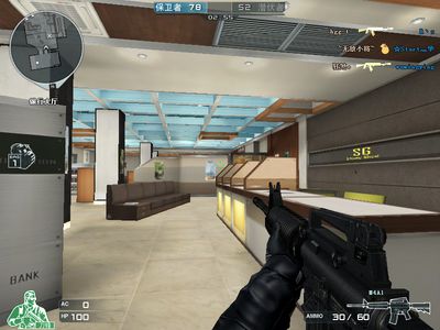 CF团队竞技模式是许多玩家热爱的游戏模式,银行TD是一张不是很热门的地图,但是我认为这个地图,非常适合锻炼玩家瞬间的反应,因为上方的透明玻璃可以看到楼下的情况,这样来说,你的精神都要非常集中才可以。因为你不注意,来自四面八方的子弹都会射向你。