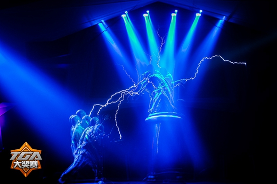 11月14日,2014TGA大奖赛冬季总决赛正式开战。在开幕式上,迎来酷炫十足的“会唱歌的闪电”。曾获天王黎明推荐的,亮相《中国达人秀》的雷霆疯来到TGA大奖赛的舞台,他们使用音乐特拉斯线圈释放音乐闪电,电光火花交织间,点燃属于每一位电竞爱好者发自心底的热情。