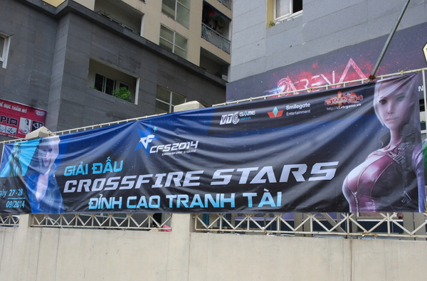 ▲ 终于到达了进行本次越南区总决赛“Arena Gaming Center”,赛场外CFS 2014的条幅非常醒目。