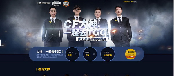 近日,由2014年腾讯游戏嘉年华(简称:TGC2014)官方举办的“大神一起去TGC”活动圆满结束,该活动旨在通过全民票选的方式选出TGC2014到场电竞明星。据悉,在此次票选活动中,《穿越火线》和《逆战》专场玩家参与热情极高,候选明星得票总数超过千万!