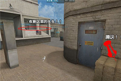 最后一个是步枪从中路突破敌人家,中途可以在这个位置卡一下,不是中路的位置一般都不会留意这里。看到没,房子里的头头就是你的啦。