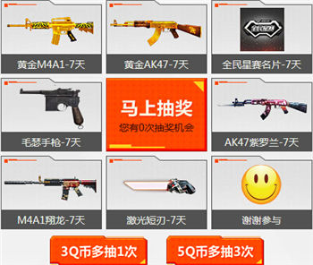 同时支付3Q币可再抽奖一次,支付5Q币可再抽奖3次!黄金枪等你拿!