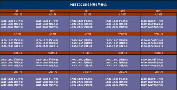 - (2017-07-23) NEST2017双端竞技 7月下旬赛程公布