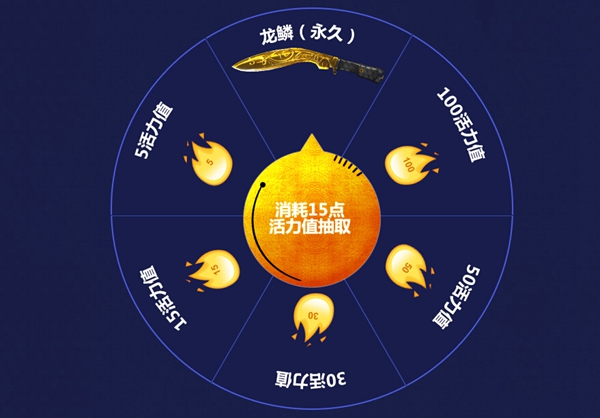 玩家每日可以花费十五点活力值玩一次六发左轮,玩家有一定几率获得一把永久黄金武器,没有抽中永久黄金武器的玩家会随机返还一定数额的活力值。