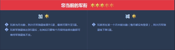 所有玩家的初始军饷星级均为3星。军饷星级的升降将在玩家第一次领取军饷后激活。